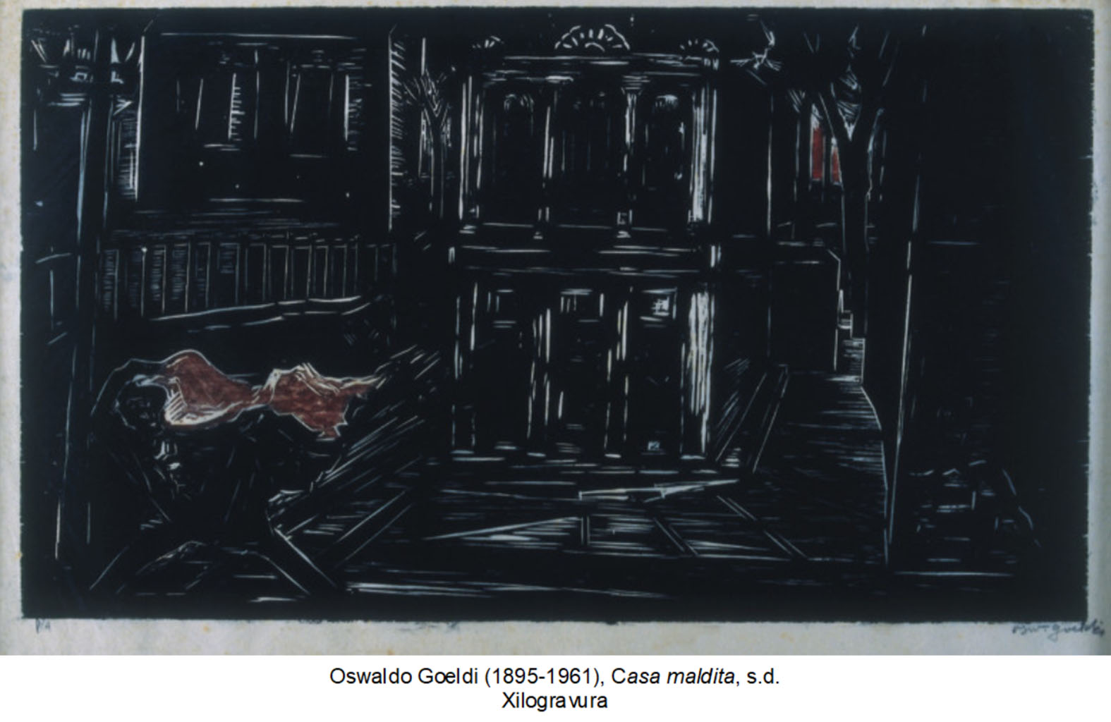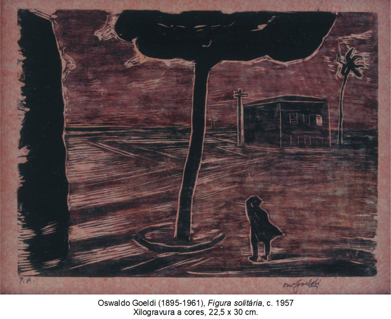 23. Na queda existencial em direção a um abismo interior, a um nada, emerge de si um vertiginoso sentimento que corresponde à imensa solidão. A ação é uma saída, um potencial de transformação. Assim, o lirismo expressionista – e Goeldi não foge à regra – funda-se na angústia e no labor.