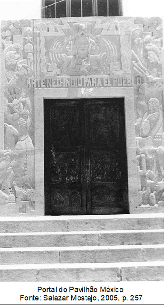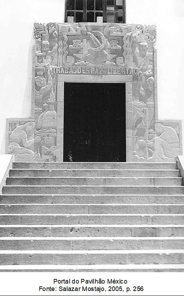 9. A presença permanente da arte em Warisata também fica evidente nas fotos do chamado Pavilhão México [ Figura 3, Figura 4 e Figura 5 ], cofinanciado pelo governo mexicano de Lázaro Cárdenas e construído, tal como o edifício principal da escola [ Figura 6 ], pelas próprias mãos dos povos indígenas de Warisata em um ato de trabalho coletivo denominado minka ou ayni (SALAZAR MOSTAJO, 2005, p. 93 sg). Embora a construção não tenha sido concluída porque as autoridades bolivianas puseram fim à experiência de Warisata em 1938, os lemas dos dois portais do Pavilhão México representam muito bem a reivindicação indigenista (tanto sociopolítica quanto estético-cultural) que Warisata representava: “TRABAJO, PAZ Y LIBERDAD” [“trabalho, paz e liberdade”], por um lado [ Figura 4 ], e “ARTE NEO-INDIO PARA EL PUEBLO” [“arte neo-índio para o povo”], por outro [ Figura 5 ].