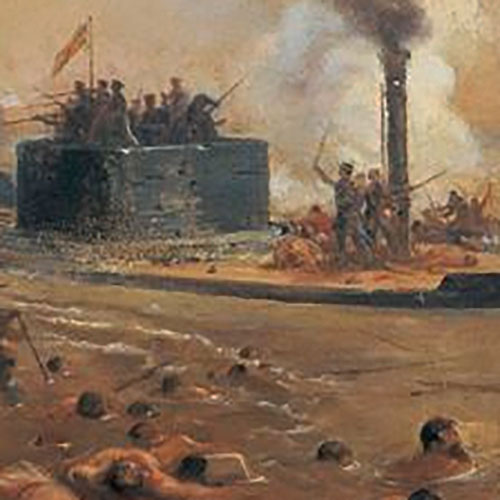 O principal objetivo deste trabalho é analisar a obra “A Abordagem do Monitor Alagoas” e a existência, nessa tela, de uma possível intersecção entre a produção de Victor Meirelles e Eduardo De Martino. O estudo foi realizado por meio da perspectiva comparada entre documentos iconográficas e do cotejamento com outras fontes produzidas no período. Levantamos, desse modo, diversos elementos indicativos da aproximação entre os trabalhos dos artistas em questão.