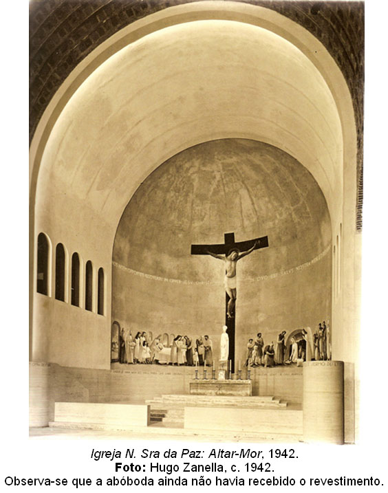 1. Faith and modernity are opposite words. Despite that, at the end of the 1930s, an architect, a painter and a sculptor broke the established patterns and overcame prejudices in order to build a modern church in a working class neighborhood – the Our Lady of Peace Church [Figure 1] -, which was requested by a missionary order and a community of Italian immigrants, who wanted a church that could represent the memory of their original country and also the hope of prosperity in the progress. They were: the architect Leopoldo Pettini, the painter Fulvio Pennacchi and the sculptor Galileo Emendabili. The initiative was taken by Father Francesco Milini, the provincial superior of the Carlista Congregation, in 1937.[1] Great figures of the Italian colony in São Paulo provided support in order to raise the necessary funds for the construction.