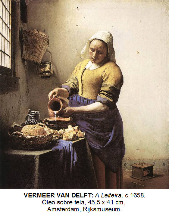 Do mesmo modo como Vermeer e Pieter de Hooch descrevem minuciosamente suas cenas, embora com pequenos formatos, Almeida Júnior também o faz, inserindo suas personagens dentro de espaços caseiros rústicos, desempenhando ações banais e sem qualquer traço de idealização. Entretanto, percebe-se que na produção do ituano não há qualquer sentido moralizante, de pureza, de vânitas ou de memento mori. A intenção de Almeida Júnior reside muito mais na descrição do mundo visível inerente a si, do que em qualquer forma de ensinamento moral, pois na arte e na sociedade laica do século XIX não faz mais sentido tratar de assuntos moralizantes. Deve-se ressaltar dentro das academias um forte clima de época, o qual atinge tanto a práxis quanto a teoria, pois através do resgate da tradição holandesa do século XVII, artistas como Vermeer e de Hooch são recuperados e estudados em suas técnicas e produções. Por exemplo, segundo Maria Cecília França Lourenço, o pintor Eugène Fromentin publica em 1876 seu célebre livro Les Maîtres d’Autrefois (LOURENÇO, 2007: 170).